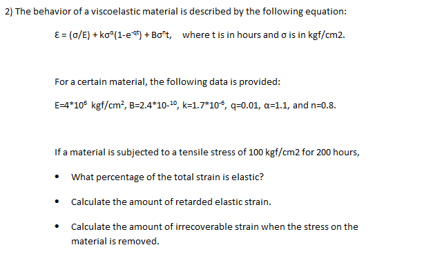 Solved 2 The Behavior Of A Viscoelastic Material Is Desc Chegg Com