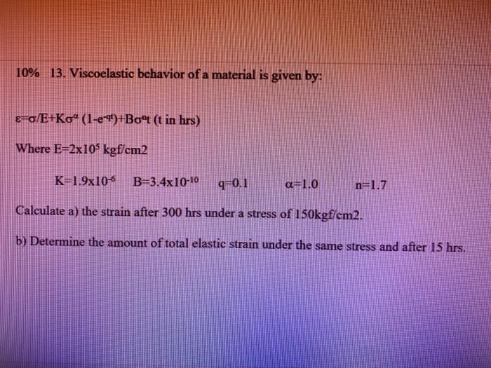 Solved 10 13 Viscoelastic Behavior Of A Material Is Giv Chegg Com